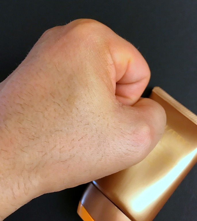Das machte tatsächlich Spaß: Der SB lässt sich leicht und streifenfrei auftragen. Die Farbe lässt sich kinderleicht verblenden und passt sich an mittlere Hauttöne exakt an. Extrem helle und sehr dunkle Haut sollte hier aber nicht zugreifen. Männer brauchen vor einem Make-up Effekt keine Angst zu haben.
