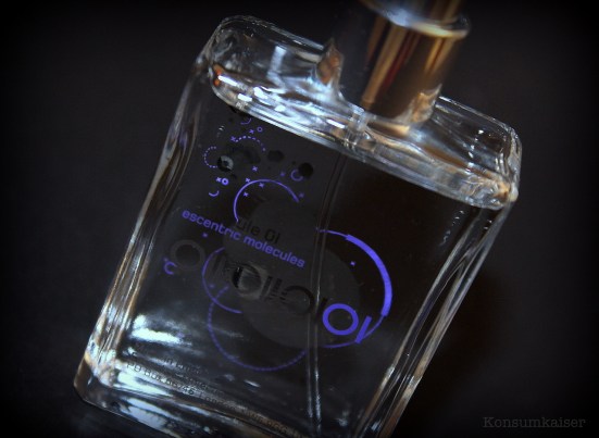 Zuerst musste ich einmal feststellen, dass es sich eigentlich nicht um einen typischen Trendduft handelt, denn der landet schnell im Mainstream und dann auf dem Grabbeltisch bei Kaufhof. Die Duftkunstwerke von Geza Schön gibt es aber nicht überall zu kaufen. Molecule 01 existiert bereits seit 2006 und ist erfolgreich an meiner Nase vorbeigewabert.