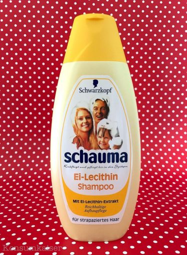 Da habe ich nicht schlecht gestaunt: Im Supermarkt gab es eine Sonderartikelpyramide mit Schauma Shampoo. Und zwar in der ungefähr hundert Jahre alten Sorte Ei-Lecithin.