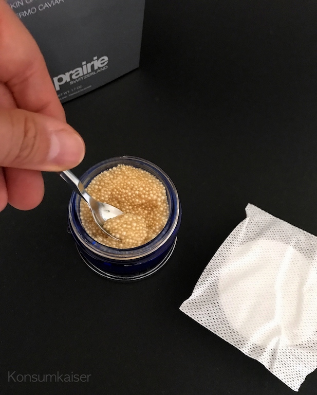 Das hat allerdings auch den Vorteil, dass die Inhaltsstoffe trotz Tiegel recht gut geschützt erscheinen. Ob das in der Praxis tatsächlich so ist, kann ich nicht beurteilen. Jedenfalls hat La Prairie durch diese Anwendungsform aus der ganzen Nummer eine Art „Ritual“ gemacht, das kann man mögen, muss man aber nicht.