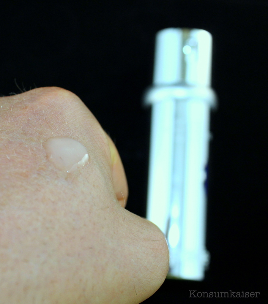 Glycerin für die Feuchtigkeit und Silikon machen die Hauptbestandteile neben Wasser aus. Das merkt man auch, das Serum ist eher gelig und gleitet sehr leicht, aber eben typisch silikonig, auf die Haut. Man spürt auch den leichten Film, der auf der Haut verbleibt.