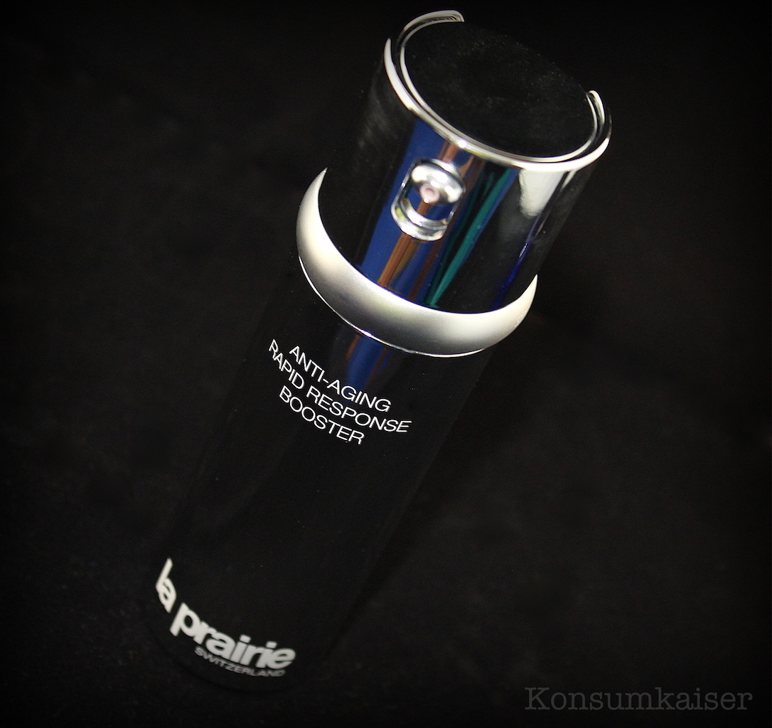 „Erleben Sie eine völlig neue Art zeitloser Schönheit mit Anti-Aging Rapid Response Booster, der bisher schnellsten Wunderwaffe gegen Falten von La Prairie. Nach nur zwei Wochen ist Ihre Haut spürbar glatter – für einen schönes, jüngeres Aussehen.“