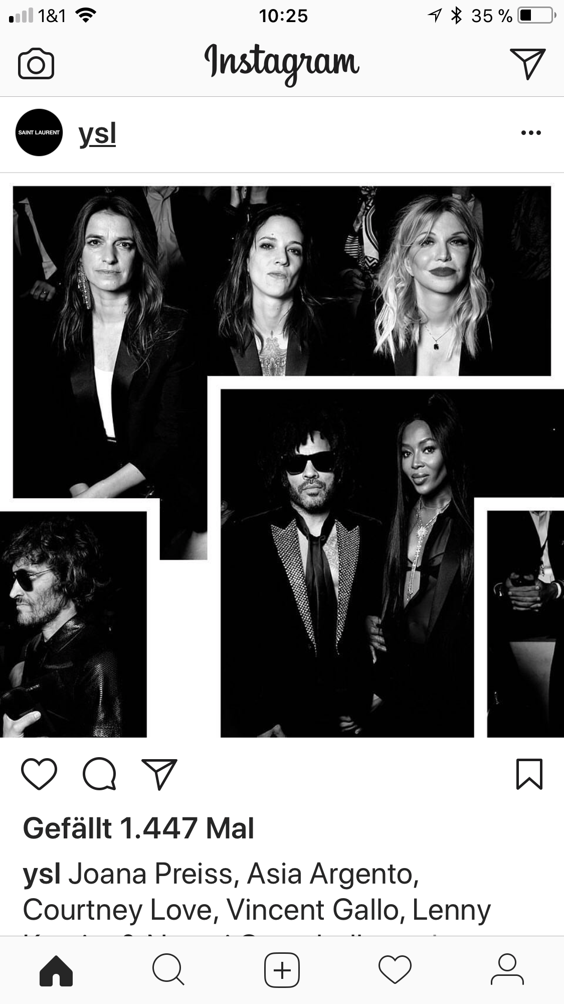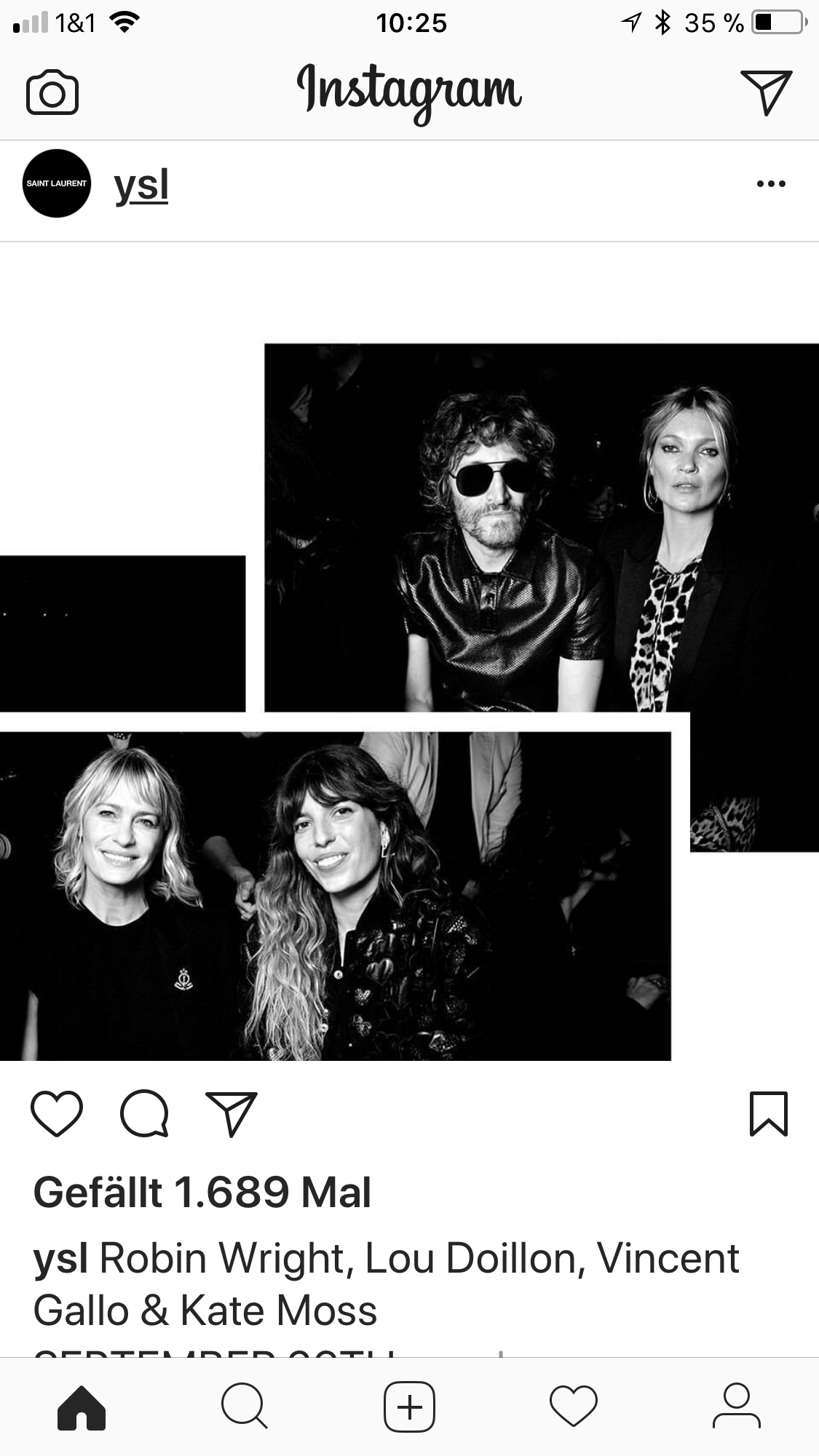 So sieht man dort bei Saint Laurent zum Beispiel Ikonen sitzen, wie Catherine Deneuve, Kate Moss, Charlotte Gainsbourg, Vincent Gallo, Charlotte Casiraghi, Naomi Campbell… *Seufz* Schade, dass wir diesen Glamour einfach nicht hinbekommen.
