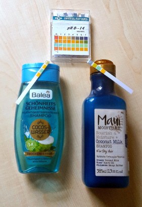 Auslöser meines neuen Interesses an Haarpflege war vor kurzem ein Reinfall mit zwei Produkten von dm: Balea Schönheitsgeheimnisse Cocoswasser Shampoo und Conditioner. „Für trockenes Haar“ steht drauf. War sehr günstig, Kokosdurft mag ich … Haare gewaschen, gespült, gefönt – sie fühlten sich an wie Stroh und sahen auch so aus. Wieso??? Nach meiner Review auf Instagram stellte sich heraus, dass ich mit dieser Erfahrung nicht alleine dastand. Eine Bloggerin berichtete sogar von roten Pusteln auf der Kopfhaut nach der Benutzung. Ich war alarmiert. Alkohol ist in den Produkten nicht drin, mit SLS hatte ich noch nie Probleme. Auf Verdacht habe ich den ph-Wert gemessen: 3,5. Ziemlich sauer. Doch ist das nun gut oder schlecht?