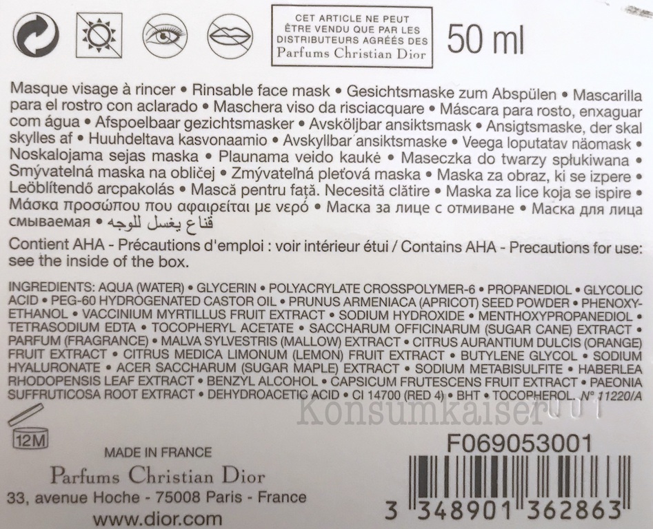 Schauen wir zuerst einmal, was sich die PR Abteilung von Dior zu dieser Gel-Maske ausgedacht hat