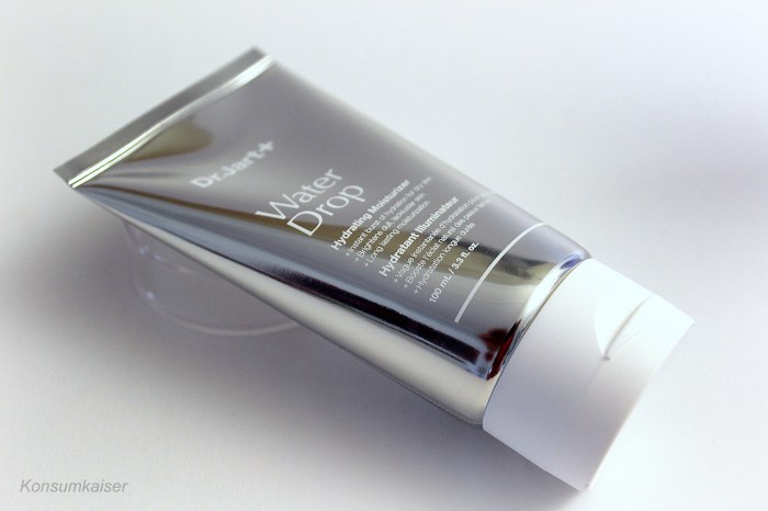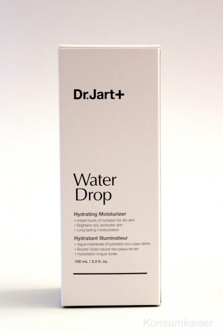 „Für alle, deren Haut stumpf und glanzlos wirkt, hat Dr. Jart+ den Water Drop Hydrating Moisturizer entwickelt: eine regenerierende Feuchtigkeitsformel für lang anhaltende Hydratisierung und einen lebendigen Teint voller Strahlkraft. Die innovative Formel basiert auf einem speziellen Emulsionssystem mit winzigen Tröpfchen, die vollgepackt sind mit erfrischenden und pflegenden Wirkstoffen. Die extrem leichte Textur verwandelt sich beim Auftragen in winzige Wassertropfen, die intensiv Feuchtigkeit spenden und glanzlose Haut zum Strahlen bringen. Die Feuchtigkeitscreme ist für alle Hauttypen geeignet und pflegt trockene, empfindliche Haut geschmeidig-zart. Zudem wirkt die Formel dank einer hohen Konzentration an Antioxidantien den sichtbaren Zeichen der Hautalterung entgegen und lässt Ihre Haut strahlend-frisch und gesünder wirken.“