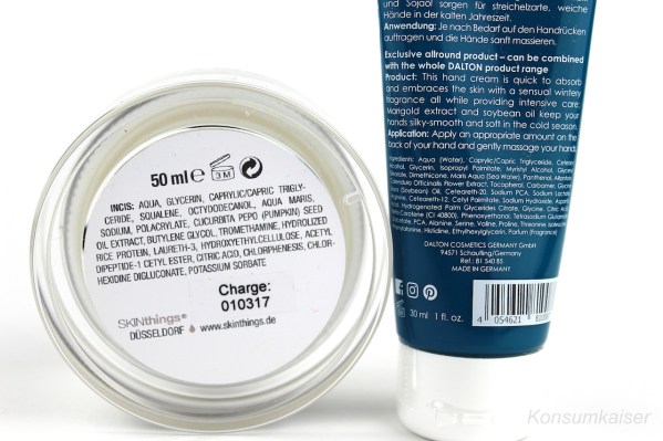 Dalton „Hand Care“: „Speziell für diese Handcreme werden die Meeresmineralien mit den intensiv pflegenden Inhaltsstoffen Ringelblume und Sojaöl für samtig zarte Hände und zum Schutz vor freien Radikalen angereichert.“