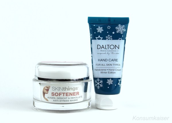 Dazu verlose ich jetzt die unglaublich weich machende Anti-Stress Maske „Softener“ für Augen, Gesicht und Dekolleté. Sie ist parfümfrei und vegan. Zusätzlich gibt es noch eine Handcreme mit Meereswirkstoffen der Winteredition von Dalton.