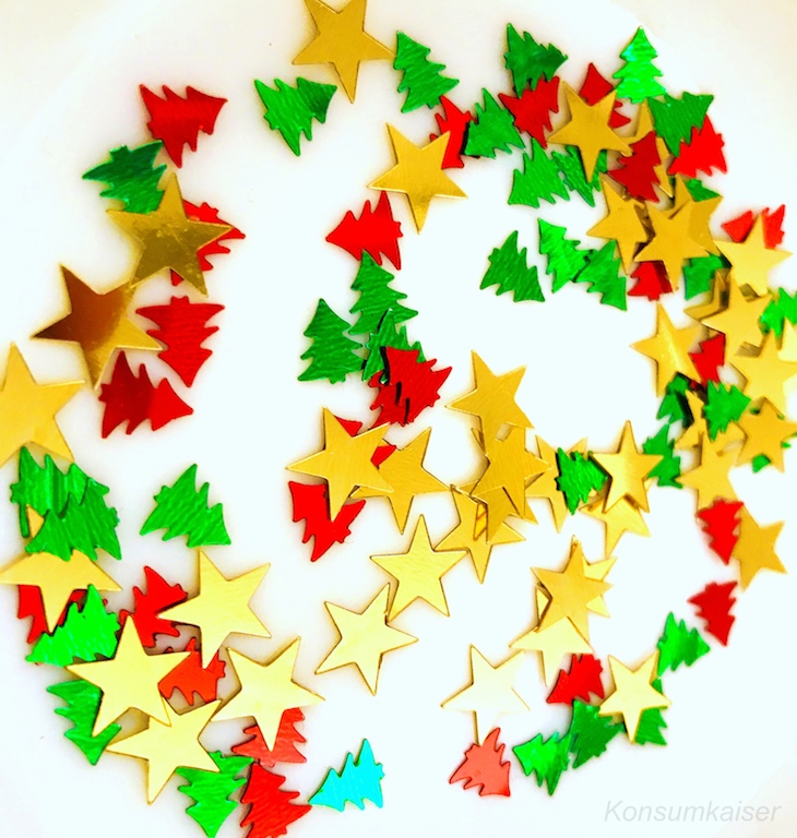 Wie nervig und nie wieder weg zu bekommen Glitzer ist, sehe ich hier jedes zweite Jahr. Da tobt nämlich der Karnevalsumzug an unserem Haus vorbei und von den Wagen wird großzügigst Glitzerzeugs geworfen. Das hat man dann unter den Schuhsohlen, unter den Pflanzen im Vorgarten findet man es bunt glitzernd noch Monate lang und wenn man meint, man habe alle Glitzerpartikel eingesammelt, dreut schon der nächste Umzug – mit Glitzer! Was waren das noch für Zeiten, als Kamellen geworfen wurden!