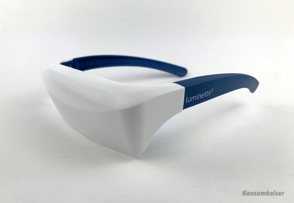 - Die Luminette kann problemlos in Kombination mit einer normalen Brille oder mit Kontaktlinsen eingesetzt werden. Die Brille wird mit drei verschiedenen Nasenstegen geliefert, wodurch sie optimal an die Konturen des Gesichts angepasst werden kann.