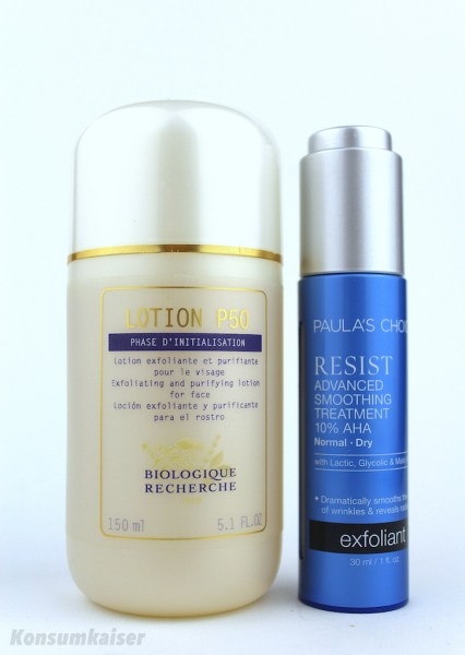 Über die beiden Säurepeelings, um die es heute geht, wurde bereits viel geschrieben. Wird Zeit, dass ich auch meinen Senf dazu gebe. Von Biologique Recherche habe ich die legendäre „Lotion P50“ und von Paula´s Choice das „Resist – Advanced Smoothing Treatment 10% AHA“ ausprobiert. Zwei Produkte, die unterschiedlicher nicht sein können. Trotzdem sind sie beide….na, lest selbst…!
