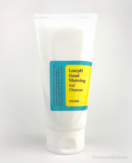Der bekannteste Cleanser aus dieser Gruppe ist wohl der „Low pH Good Morning Gel Cleanser“ von COSRX (ca. pH 5). Den nutze ich auch meist, denn er funktioniert gründlich und schnell, duftet allerdings stark nach Teebaumöl, das muss man mögen. Da das Produkt ziemlich günstig ist, benutze ich es auch ab und an als Duschgel. (Ich wasche übrigens mein Gesicht höchstens einmal und nicht doppelt, da die Gesichtsreinigung das „belastendste“ Ritual in einer Hautpflegeroutine ist.)