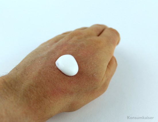 Die Lotion duftet nach nichts, und sie gleitet geschmeidig und frisch auf die Haut als wäre sie mit Silikonen bestückt. Ist sie aber nicht! Dafür zieht das Ganze auch noch prima ein und hinterlässt kein klebriges Gefühl. ABER, und das ist eigentlich sogar ein großer Vorteil, man muss sie sparsam auftragen. Ich war zuerst ein wenig überschwänglich und hatte prompt ein leicht schmieriges Gefühl an den Händen. Das verschwand vollständig, als ich die Auftragsmenge anpasste.