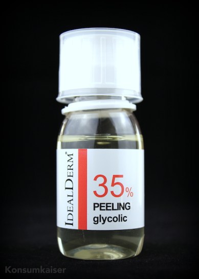 Ich stöbere ja gerne mal zwischendurch im Internetshop von Idealderm, denn dort gibt es ständig spannende Produkte zu entdecken. Einziges Problem: Ich finde es dort extrem unübersichtlich und irgendwie nicht einladend. Trotzdem bin ich in meiner Lieblingsrubrik „Peeling“ fündig geworden. Ein Glykolsäurepeeling mit 35% und einem pH Wert von angeblich 1,8 – 2 weckte mein Interesse.