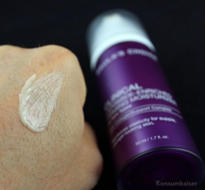 Unbeduftet und ziemlich gut verträglich ist der Ceramide-Enriched Moisturizer auf jeden Fall, trotzdem müssen sehr empfindliche Hauttypen bei solchen Wirksstoffbomben immer ein wenig vorsichtig sein. Zum Glück brauchen die stabilisierten Vitamin C Ester kein saures Milieu, was die Verträglichkeit wieder verbessert. Retinol ist aber auch niedrig dosiert ziemlich potent, und wer das noch nie ausprobiert hat, sollt erst einmal vorsichtig antesten.