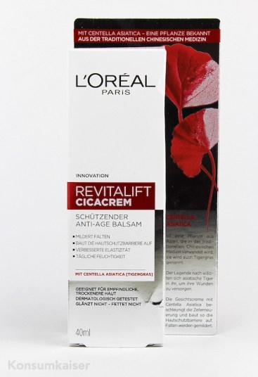 Noch eine Überraschung. Ich hatte es ja letztens prophezeit, die Cica-Creme Invasion geht los. Allerdings ist diese Revitalift Cicacrem (komische Schreibweise) erstaunlich gut. Sie macht die Haut gleich nach dem Auftragen unglaublich weich. Ganz toll. Sicher, es ist viel Silikon enthalten, aber der Balsam fühlt sich nicht so sehr danach an. Angenehm kühl, leicht und doch pflegend und versorgend. Es macht mir richtig Spaß dieses Produkt aufzutragen. Dass ich das noch einmal über ein L´Oréal Produkt sagen würde… 😉 (40 ml ca. € 11,95)