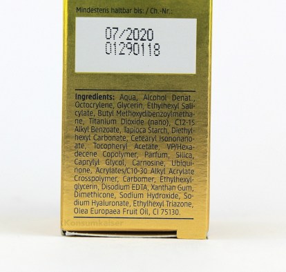 Der Booster ist flüssig und leicht ölig, aber zumindest auf meinem Handrücken gleich eingezogen. An 2. Stelle der Incis steht leider schon Alk. denat., was ich pers. bei Boostern nicht ganz so schlimm finde, man wendet sie ja nicht pur an. Der Rest der Inhaltsstoffe sah auf den ersten Blick ok aus, da kenne ich mich aber nicht so gut aus.