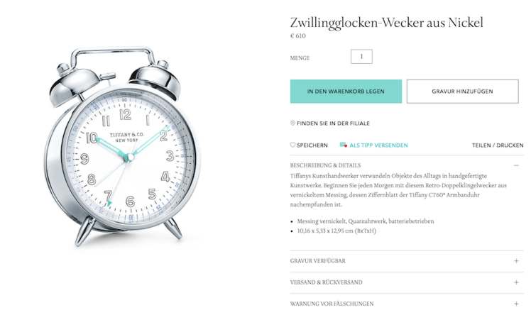 Ein Wecker von Tiffany macht was her, oder? Doch das Ding ist nicht mal Sterlingsilber. Müssen die Raubritter von Tiffany gleich 610 Euro dafür verlangen? Huii…