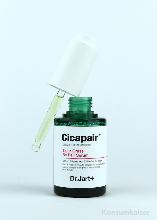 „Dr. Jart+ entwickelte das „Tiger Grass Re.Pair“-Serum, um gereizte Haut zu beruhigen und Rötungen sowie Irritationen zu lindern. Die Formel des leistungsstarken Serums ist mit Extrakten der Centella asiatica angereichert – auch Indischer Wassernabel oder Tigergras genannt –, die für ihre regenerierenden und besänftigenden Eigenschaften bekannt ist. Auch sensible oder gerötete Haut sieht nach der Anwendung gesund und wunderbar gepflegt aus – und sie fühlt sich auch so an!“