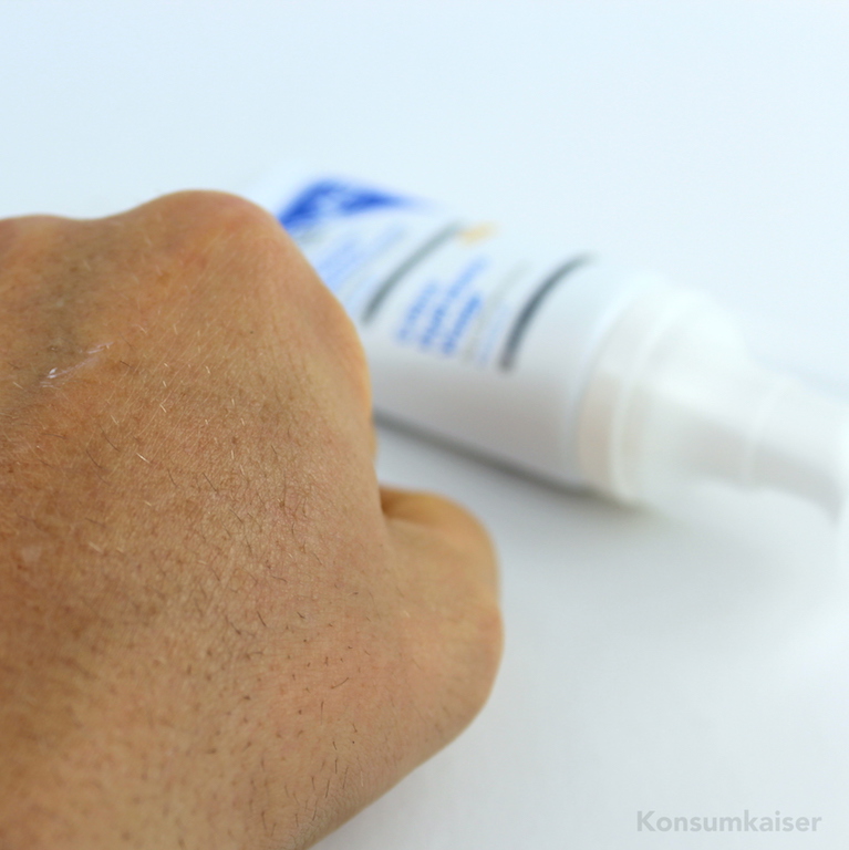 Sehr schön ist die Spendertube, die keine Luft zieht und den Inhalt somit mustergültig schützt. Die chemischen Filter sorgen dafür, dass kein Weißschleier auf der Haut entsteht, und die Reichhaltigkeit ist für meine ziemlich trockene Haut wunderbar ausreichend. Für mich ist das die perfekte Cremeserie für die Kombination mit Boosterprodukten!