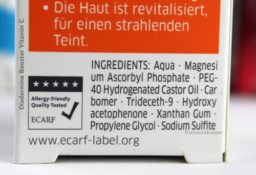 In letzter Zeit war ich von den Diadermine Produkten nicht sonderlich beeindruckt. Die konnten einfach nix bei mir. Das war so langweilig, dass ich nicht einmal Lust dazu hatte einen Bericht über die Nichtskönner zu verfassen. Nun erwarte ich besser auch nicht zu viel von dem neuen Vitamin C Booster, obwohl sich das als Zusatzprodukt ganz gut anhört (ein stabiles Vitamin C Derivat ist enthalten), und der Preis schon ziemlich niedrig ist. Diesmal werde ich in jedem Fall berichten! 15 ml ca. € 7,95 – in Drogerien und Kaufhäusern