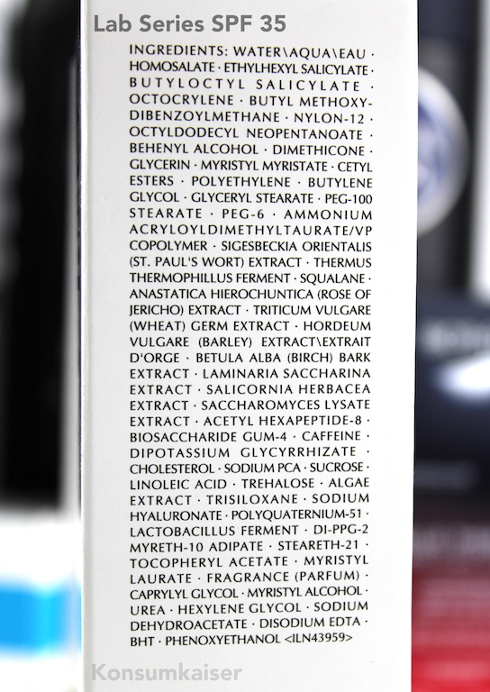 Von Lab Series gibt es eine Sonnencreme für Männer, die auch für Frauen superinteressant sein könnte. Day Rescue Defense Lotion SPF 35 ist deutlich leichter als die meisten Sonnencremes, klar, denn Männer mögen meist keine fette Pampe im Gesicht. Aber eben viele Frauen auch nicht. Das wäre also möglicherweise eine Alternative (Die Cicabio 50 ist deutlich reichhaltiger und weniger frisch). Die Inhaltsstoffe sind hier ziemlich imposant, die Filter chemisch, also weisselt nichts. Nur ein wenig Parfüm ist enthalten, das hätte man sich bei LS auch sparen können, denn parfümfreie Produkte gibt es dort auch schon längst. 50 ml. ca. € 33,00 (zB. Parfümerie Kirner)