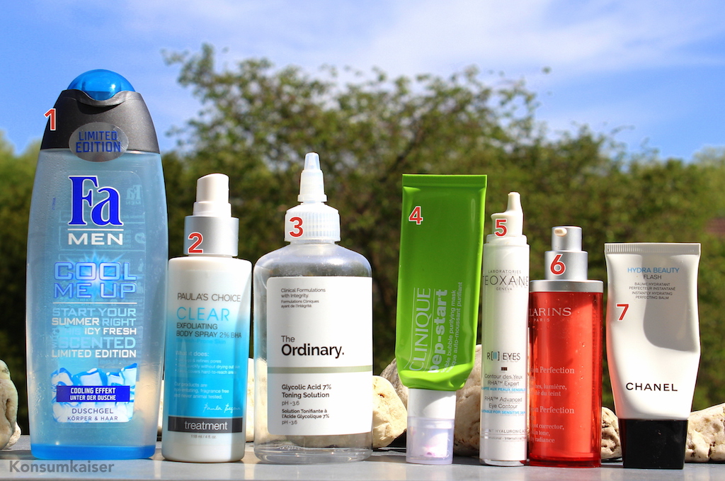 3) The Ordinary „Glycolic Acid Toning Solution 7%“ Die Flüssigkeit hatte ich in eine Sprühflasche umgefüllt und habe es als Toner zum Absenken des Haut pHs vor einem stärkeren Säureprodukt verwendet. Es ist sparsam und durch den niedrigen pH Wert tut es seinen Job, wenn man ansonsten bereits stärkere Peelings gewöhnt ist. Für blutige Anfänger aber ein durchaus auch empfehlenswertes chemisches Peeling. Werde es nachkaufen, denn in der Sprühflasche kann es auch am Körper arbeiten, meine Schienbeine lieben es zum Beispiel sehr. 240 ml ca. € 8,70 (zB. über Deciem, Mußler Beauty oder Lodenfrey)