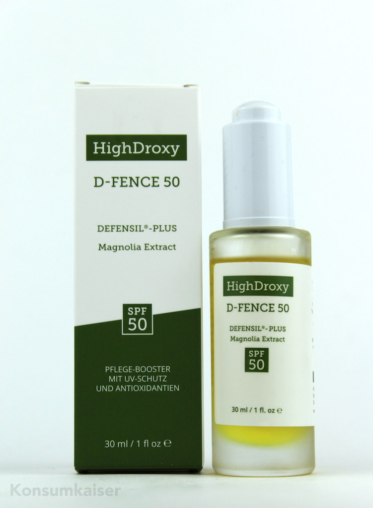 D-Fence 50 enthält auch AOX, ganz klar. Hier ist besonders der Magnolienextrakt zu nennen, den ich persönlich ziemlich spannend finde, der aber leider etwas schnöde klingt.