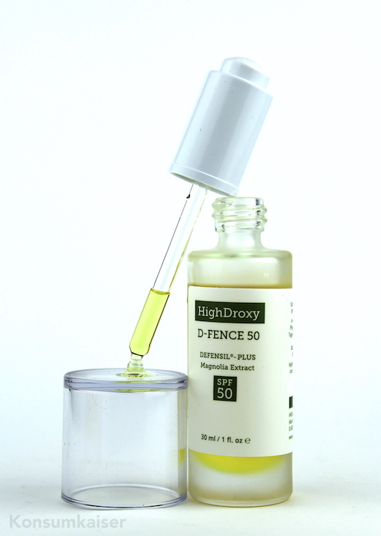 Ein Öl? Ja, ein Öl. D-Fence 50 ist ein Pflege-Booster, den man alleine, aber auch mit einer Tagescreme vermischt auftragen kann.