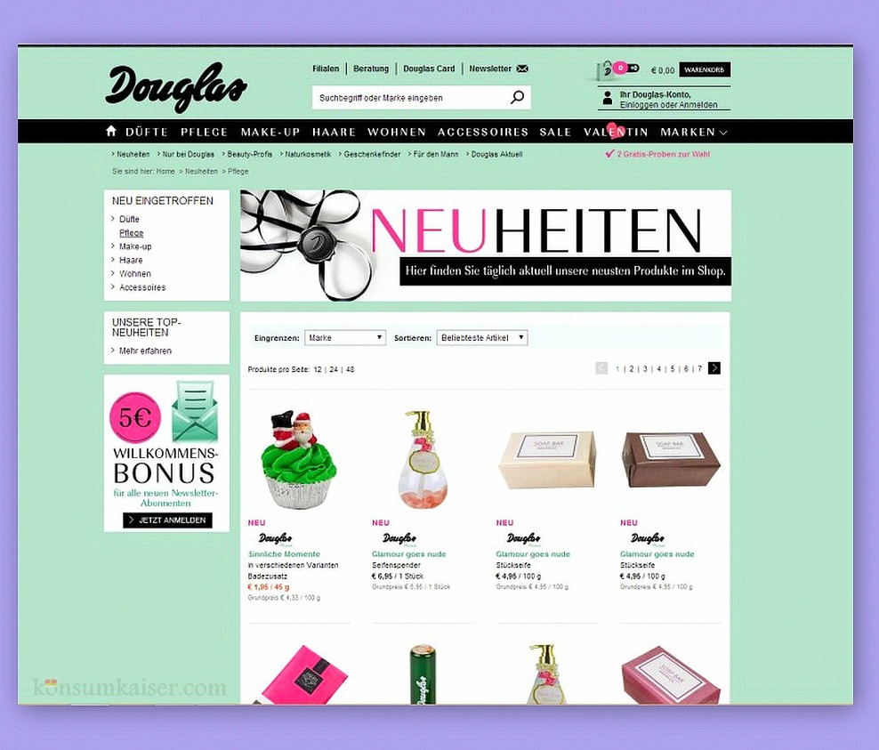 Ich bestelle durchaus auch mal bei Douglas, allerdings ist das im Internet nicht meine erste Wahl. Der türkisfarbene Riese ist mir nicht so wirklich sympathisch, der Internetauftritt war lange Zeit vergleichsweise schlecht und die Preise sind erst in letzter Zeit (marktangepasst) etwas gefallen.