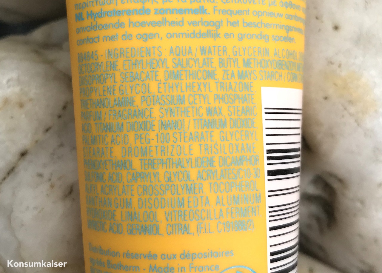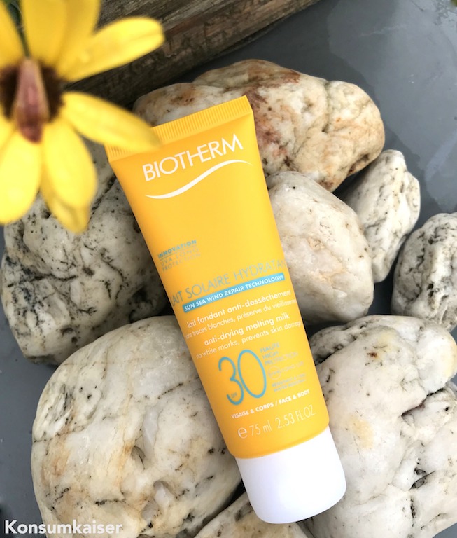 Da muss ich doch noch kurz vermelden, dass es bei Douglas ein „Schnäppchen“ zu kaufen gibt, das allerdings mit Vorsicht zu genießen ist: Die Sonnencreme von Biotherm „Lait Solaire Hydratant“