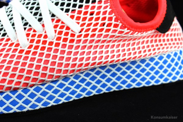 Ich laufe ja fast immer mit Turnschuhen herum. Dementsprechend groß ist auch meine Sneakersammlung. Meine neueste Errungenschaft war der Adidas „Deerupt“ Ein Schuh, der optisch vollständig von einem Netz umgeben ist. Die Farbkombi sah für mich ebenfalls schick und modern aus, also musste der Schuh natürlich zur Sammlung gehören. Doch meine Begeisterung hält sich ernsthaft in Grenzen…