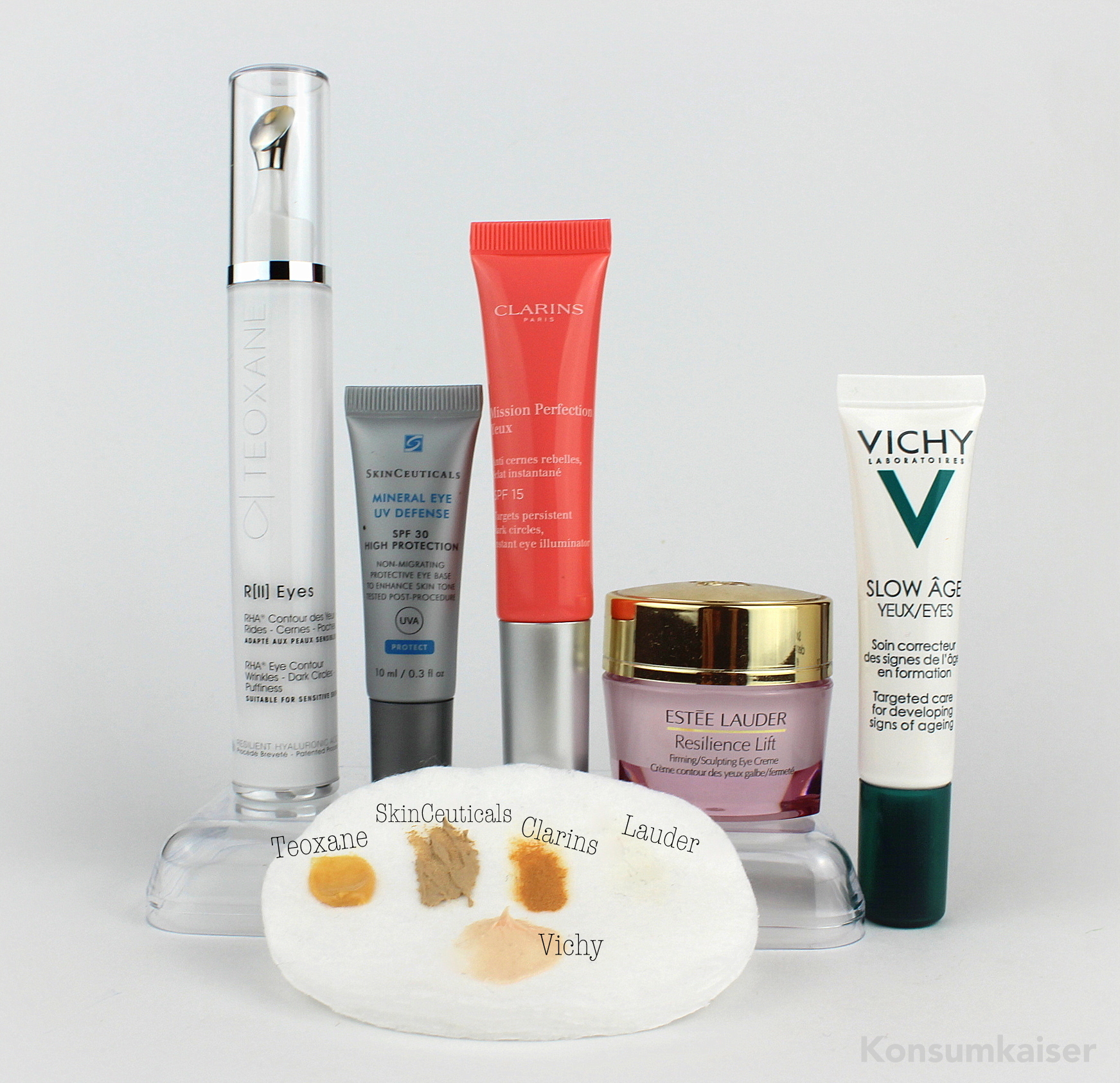 Die getönte Augenpflege von Skinceuticals habe ich auch noch, benutze sie aber gar nicht mehr. Sie ist viel zu fest und pastig, als Concealerersatz bei meiner trockenen Augenpartie völlig ungeeignet, am ehesten noch als zusätzliche Sonnencreme für die Augen. Vertrage ja direkt am Auge nicht viel.