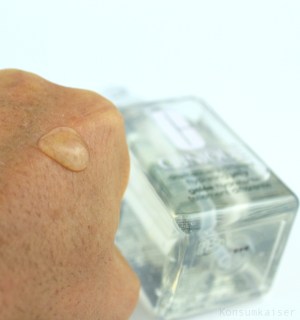 Ganz klar, das durchsichtige und völlig ölfreie Gel ist parfümfrei und enthält auch keinen unguten Alkohol, obwohl Produkte mit dieser Konsistenz meist voll davon sind. Überhaupt ist die Formulierung nicht besonders reizend, ein Konservierer ist allerdings Phenoxyethanol, was für Allergiker interessant ist.