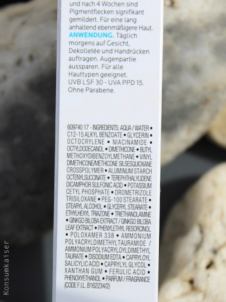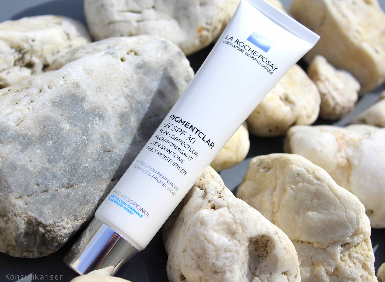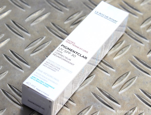 Pigmentclar ist eine Produktserie von La Roche-Posay, die sich besonders gegen unschöne Pigmentflecken richtet. Die Augenpflege und das Serum (Alkohol!) wollte ich nicht testen, aber die Tagespflege mit Lichtschutzfaktor 30 habe ich mir doch gekauft.