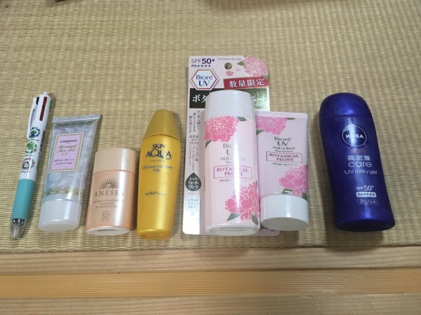 Das wohl bekannteste japanische Sonnenschutzprodukt im Internet ist wohl Bioré UV Aqua Rich (Gel oder Essence), aber mir persönlich sind die Bioré-Produkte nichts für mein Gesicht. Ab und zu nutze ich mal die UV Perfect Milk (https://www.ratzillacosme.com/reviews/best-pick-biore-uv-perfect-sunscreen-line-2015-formula/) für die T-Zone, wenn es einen Tag lang gar nicht glänzen darf, aber meine Haut beschwert sich dann garantiert über den vielen Alkohol mit Schuppen und dicken Pickeln. Ich bin auch kein Fan von parfümierten Pflegeprodukten für das Gesicht (am Körper gerne). Trotzdem musste ich mir die limitierten Editionen mit Peony-Aroma zulegen, da ich Pfingstrose im Parfum bisher immer mochte. Für mich riechen sie nur nach Seife, aber sehr frisch und ich werde sie im Sommer als Handcreme und für die Arme zum unterwegs Nachcremen benutzen. Für den Hals etc. nutze ich momentan ein neues Gel von Nivea (https://www.ratzillacosme.com/sun/nivea-sun-high-adherence-care-uv-milky-gel/), das sich zwar gut anfühlt und gut hält, mir aber im Gesicht durch den Alkohol zu sehr in den Augen gebrannt hat.