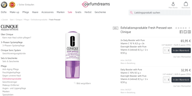 Ich habe es bereits bestellt, leider ist es seit Wochen immer noch nicht lieferbar. Da war Parfumdreams wohl ein bisschen arg voreilig! Ich bin jedenfalls sehr gespannt, das Retinol kommt als Nachtprodukt, passend zum „Fresh Pressed“ Vitamin C Serum für den Tag.