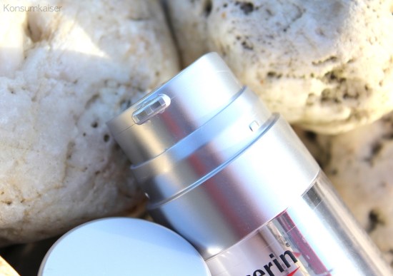 Mit einem Druck auf den Pumpspender erhält man (am Abend nach der Reinigung) die richtige Menge Gel und Creme für Gesicht und Hals. Man spart die Augenpartie besser aus, und das Produkt ist frisch und luftig, lässt sich einfach verteilen, zieht rasch ein und hinterlässt nur einen ganz leicht klebrig-pudrigen Film auf der Haut, der nach einer nachfolgenden Creme schnell nicht mehr spürbar ist. Dafür halte ich eine kleine Wartezeit ein (5 Minuten), offiziell braucht man es nicht, ich mache es trotzdem.