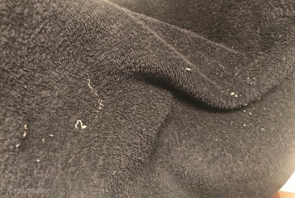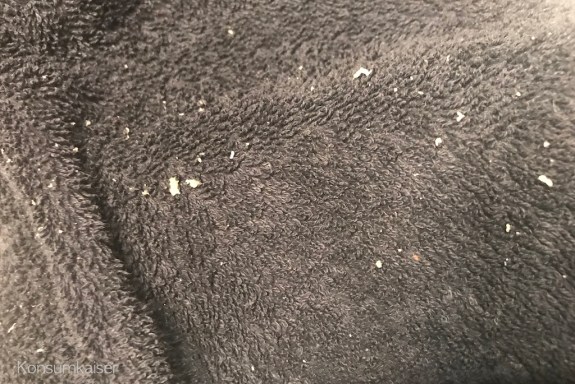 Das Tuch war bereits voll mit Röllchen nach einer einzigen Wischbewegung über die Haut: