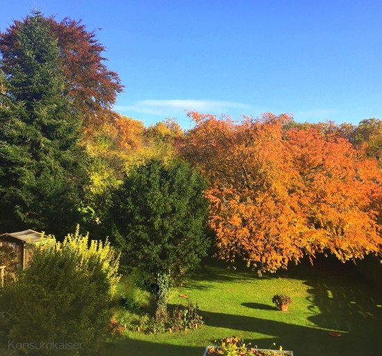 Ich finde den Herbst gar nicht so schlimm. Diese Jahr sowieso nicht. Im Moment sind es 16 Grad und die Sonne scheint, dazu die ganze Farbenpracht mit Morgentau auf den Blättern. Besser geht nicht im November. Später kommt dann die Festbeleuchtung in den Städten, Vorfreude, weihnachtliche Stimmung, Gemütlichkeit. Leider fehlt in meiner Region meistens der Schnee.