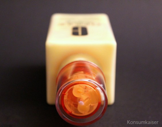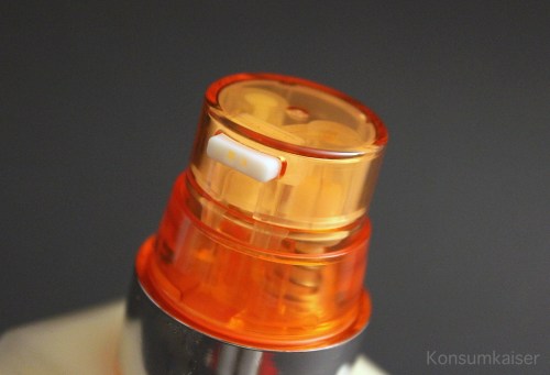 Die orange Patrone enthält aber leider keine bahnbrechenden Neuerungen, sondern allgemein bekannte Wirkstoffe, über die man sagt, sie können die Haut „aufmöbeln“. So zB. Glykolsäure, also eine Alpha Hydroxysäure, die durchaus schöne Haut zaubern kann. In dieser Version (Menge und pH Wert sind unvorteilhaft für diesen Wirkstoff) kann man allenfalls eine feuchtigkeitsspendende und antioxidative Wirkung erwarten. Den typischen AHA-Glow eher nicht.