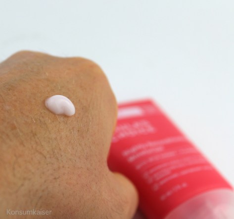 Anmutung: Eine sehr leichte Gel-Creme oder auch Fluid. Es ist ziemlich „feucht“, zieht recht gut ein, ist natürlich duftneutral, klebt nicht und enthält keine Silikone. Nach dem Auftragen war meine Haut zuerst schön durchfeuchtet, aber erstaunlicherweise verschwand dieser Eindruck recht schnell. Als alleinige Creme für die Nacht funktioniert das für normale und trockene Haut mMn keinesfalls! Da muss dringend noch etwas (zur Okklusion) drüber.