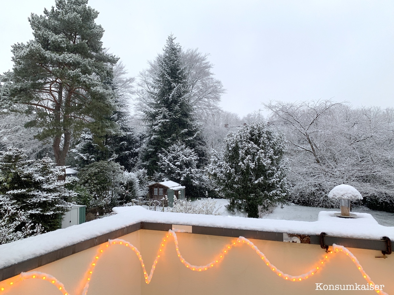 Über Schnee motzen und dazu ein idyllisches Schneefoto aus dem Garten posten 😉