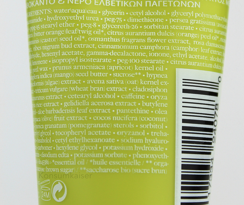 Wie man sieht, es gibt eine große Menge Duftstoffe, man muss es hier öfter wiederholen. Bei mir persönlich funktioniert die Maske/Creme allerdings mustergültig, meine Haut, und auch meine Rosazea, verhalten sich unauffällig, auch nach vielen Wochen des Gebrauchs.