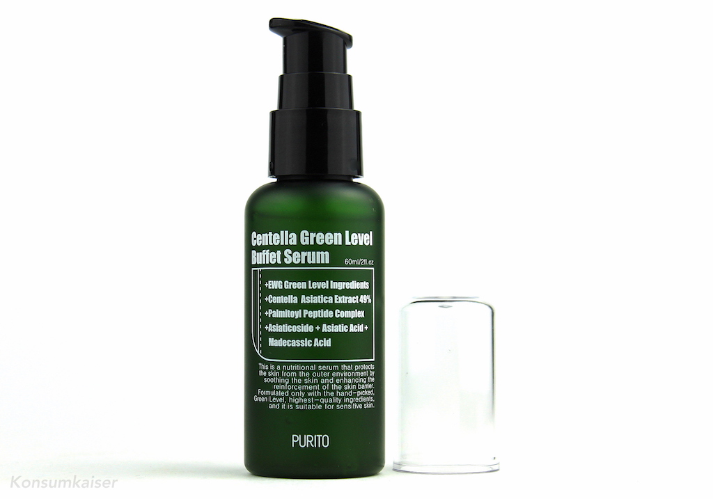 Auf den ersten Blick ist dann das Centella Green Level Buffet Serum von Purito meinem bisherigen Favoriten, dem Madagascar Centella Asiatica 100 recht ähnlich, hat es doch nicht nur einen kleinen Anteil an Centella, sondern kann auch mit 49% (plus Asiaticoside, Asiatic Acid, Madecassic Acid) ganz schön klotzen, was eigentlich eine super Nachricht in Hinblick auf Hautberuhigung und anti-entzündliche Eigenschaften sein müsste.