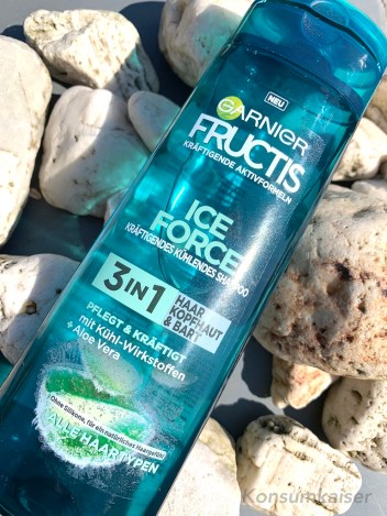 Bei Produkten, die man abwäscht, zB. Duschgels und Shampoo, bin ich gnädiger. Und siehe da, seit einiger Zeit gibt es eine neue Shampoo Serie von Garnier Fructis, die mir gut gefällt: Ice Force.