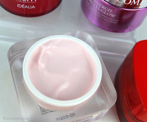 Die „dezenteste“ Creme in dieser Sammlung. Eine Tönung in Rosé ist kaum auszumachen, aber lichtstreuende Pigmente sorgen trotzdem für ein ruhigeres Hautbild und optisch geminderte Fältchen. Dabei wirkt auch die Version für trockene Haut schön erfrischend, duftet zum Glück nur mittelleicht und frisch, und empfiehlt sich auch für die wärmere Jahreszeit. Eigentlich für eine L´Oreal Tochter eine erstaunlich schöne Tagescreme, als Anti-Aging Pflege aber immer noch weit hinter den aktuellen Möglichkeiten.