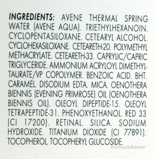 Ansonsten packt Avène hier auch nicht viele Besonderheiten mit hinein, was allerdings kein Nachteil sein muss, denn es macht die Wirkstoffliste übersichtlicher, bei Unverträglichkeiten lässt sich der „Schuldige“ schneller identifizieren.