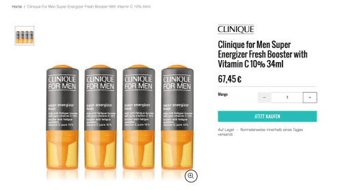 Im Pflegebereich bleibt es für die Männer ebenfalls langweilig, so bringt Clinique wieder ein Produkt heraus, das es schon recht lange im Damenbereich zu kaufen gibt. Eine dunkle Verpackung drum herum, schon ist das Pflegeprodukt mit Vitamin C für den Mann klar. Wenigstens scheint der Preis für Frauen und Männer identisch zu sein.