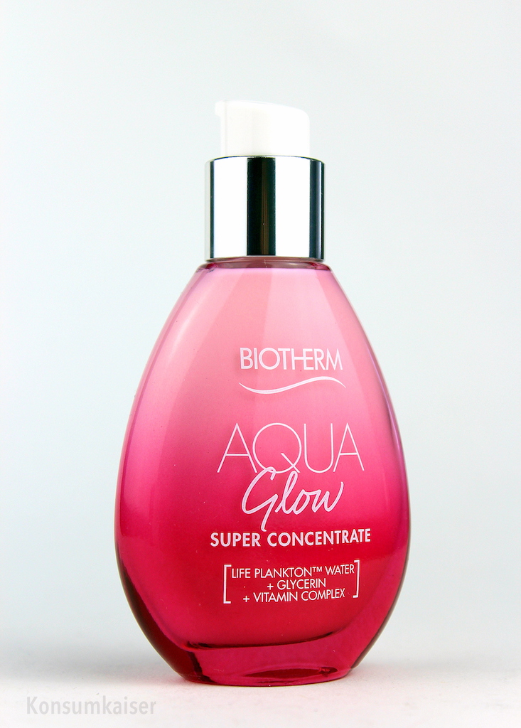 War klar, ich reagiere sofort aufs Wörtchen „Glow“ und handle mir dadurch die nächste knall-rosarote Pulle im Badezimmer ein. Eine bauchige und dennoch schlanke, jedoch schwere Glasflasche mit Pumpspender ist das. „Üppig“ ist mein erster Eindruck. Für den Urlaub nicht so optimal, das Gewicht der Flasche ist heftig, es sind 50 ml enthalten, und der Pumpspender ist nicht luftdicht abschließend. Dafür kann man sie später im Altglas entsorgen.